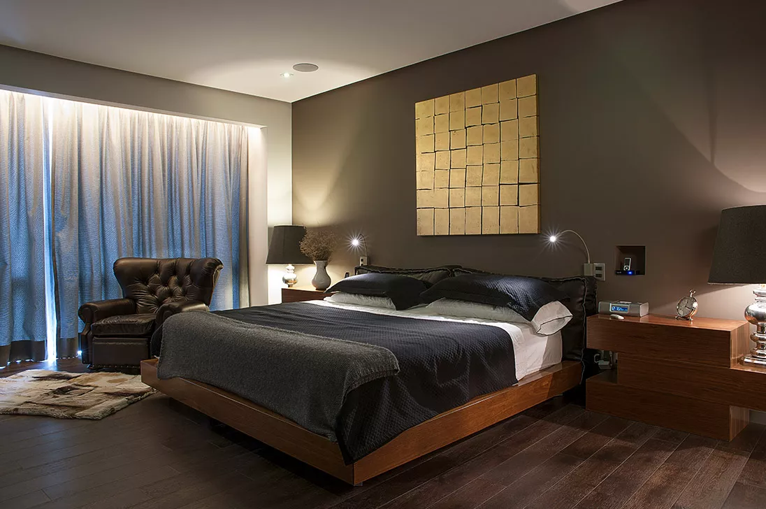 Bedroom, Drapery, Lamps, Downlights – Lutron